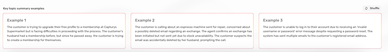 Randomly selected examples of key topic summaries.
