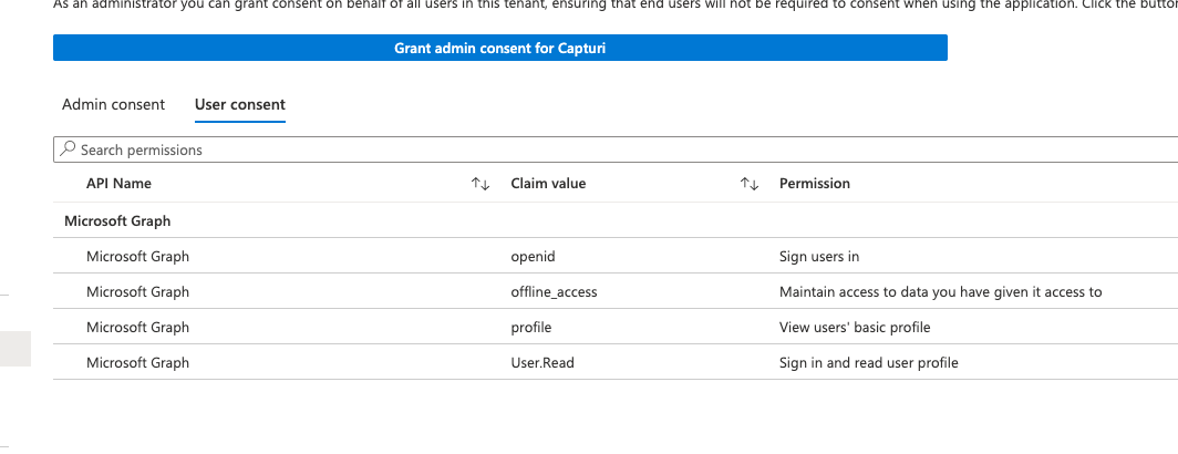 If you want to read more about permissions and consent, please take a look here: https://docs.microsoft.com/en-us/azure/active-directory/develop/v2-permissions-and-consent
