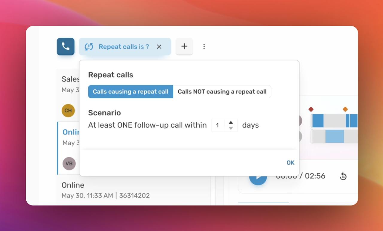 Some companies have customers who are meant to call multiple times a day, and these can now be removed so that they dont skew data for the repeat call analysis.