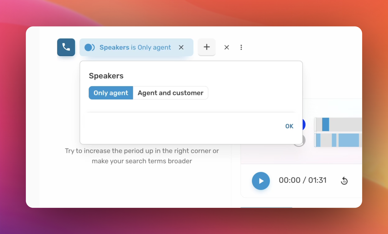 *This filter is only applicable for customers who have mixed recordings available in their phone system.
