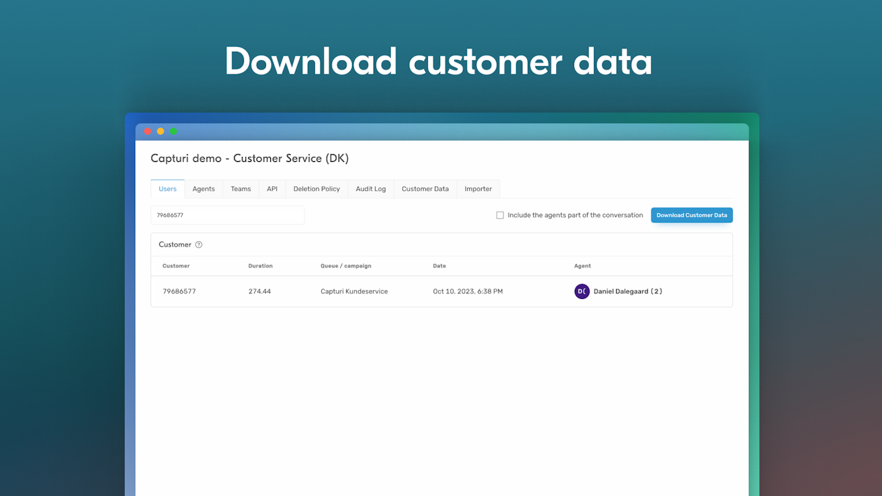 You can even chose to exclude the agents voice from the recording, so the customer is only available to hear his/her own voice on the recording.